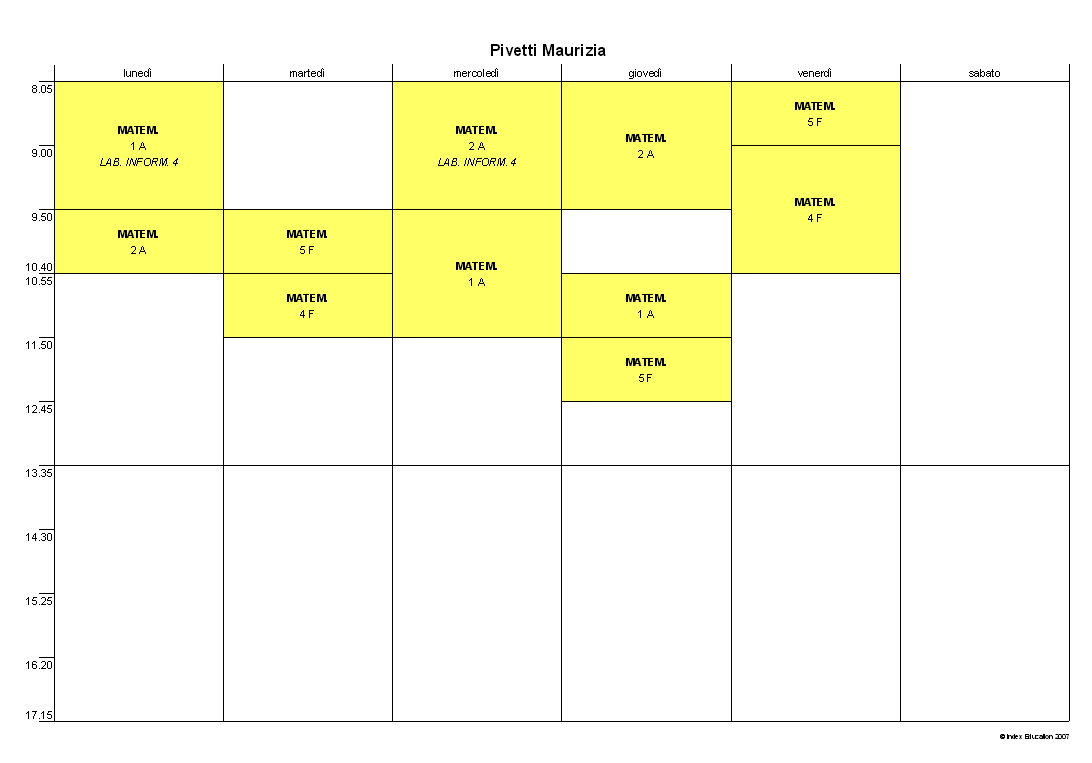 Voi siete qui:Home page>Docenti>Pivetti Maurizia>Orario